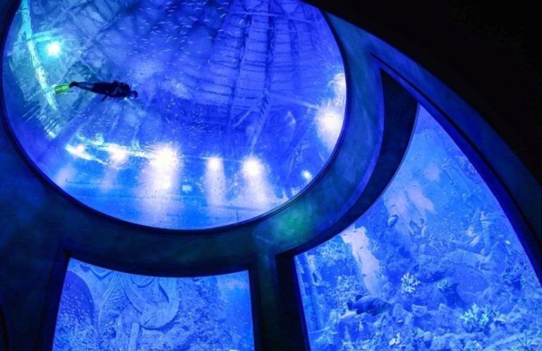 Two underwater viewing rooms with 7-m-wide domed ceilings
